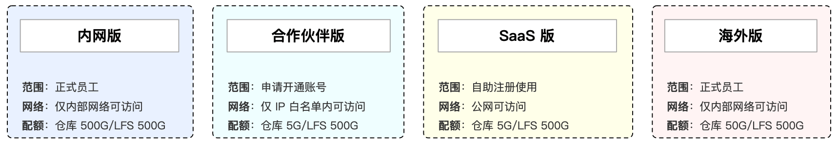针对自研体系以及生态合作伙伴推出了四个代码管理服务版本: