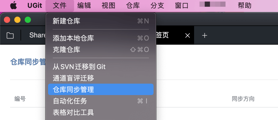 在 UGit 菜单 · 文件 · 仓库同步管理 打开功能界面