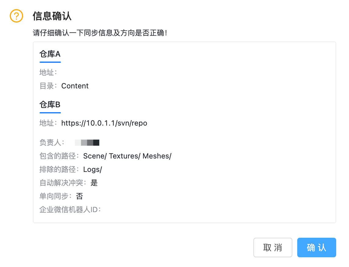 默认是双向同步,勾选后是单向同步,可根据情况进行选择,比如对于一般的资源外包,单向同步就足够了。