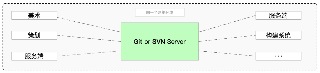 - 项目组的服务端、引擎使用 Git 管理源码,而美术策划使用 SVN 或者 P4 管理美术资源和文档
