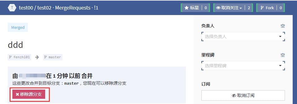 选择一个并进入,然后点击合并下方的 移除源分支 即可。