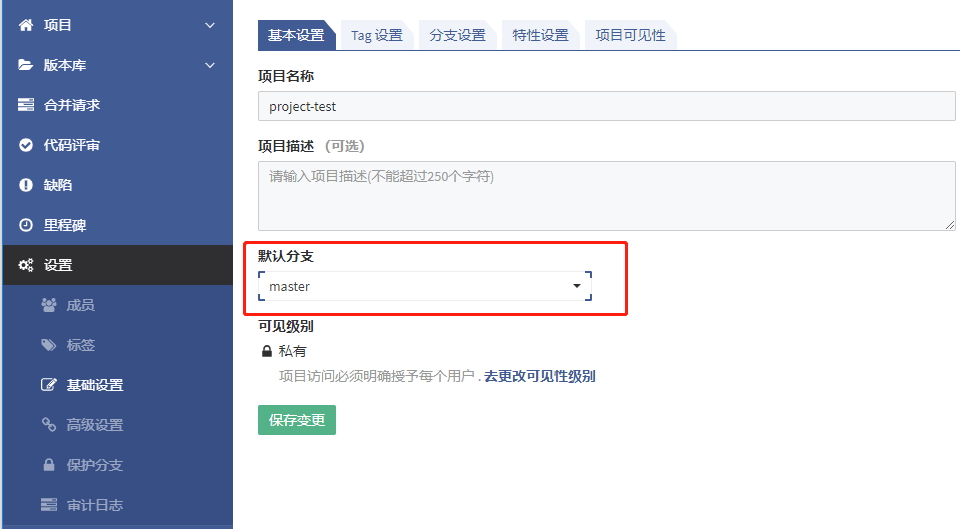 在这里选择您需要设置的分支,然后点击下面的保存变更。