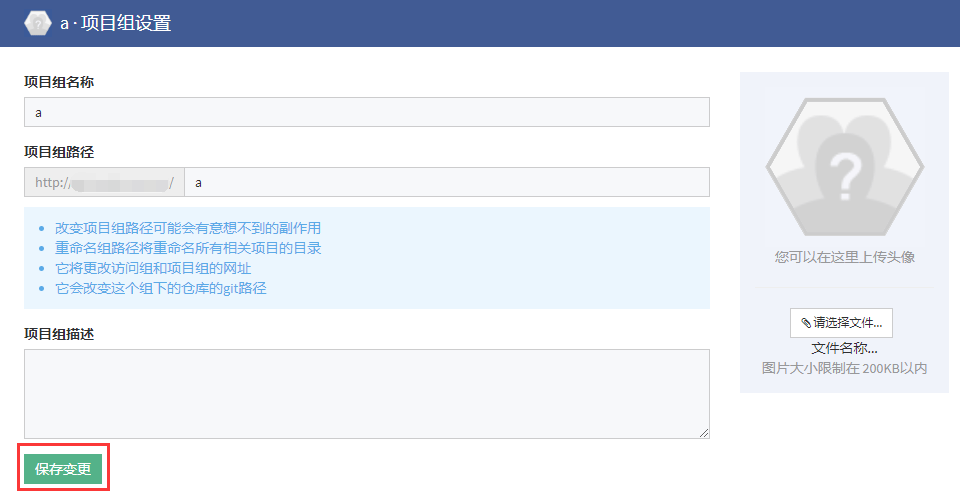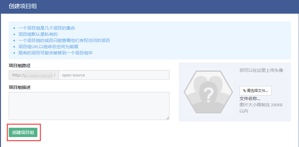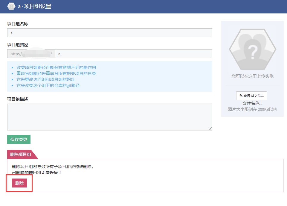 注意:路径只能包含字母、数字、"_"、"-"和" . ",不能以"-"开头,也不能以"."结尾;头像大小必须小于200k
