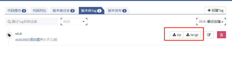 导航至项目-选择一个项目-版本库-提交-版本库Tag