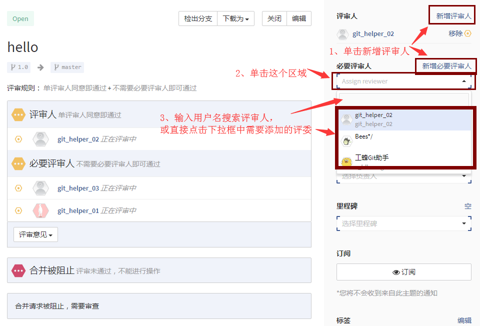 特性2:勾选后,合并请求的创建者不能被添加到评委中。